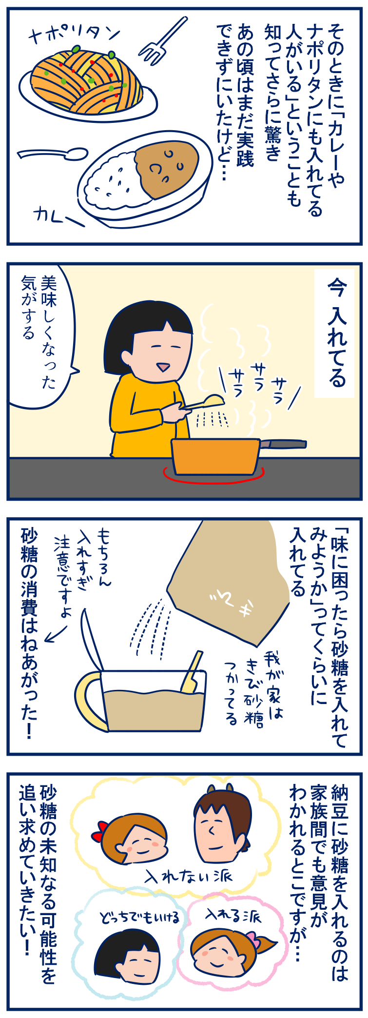昨日ちょうどカレーを作ったときに砂糖のこと思い出して、3年も経つと変わるもんですねえ(笑)